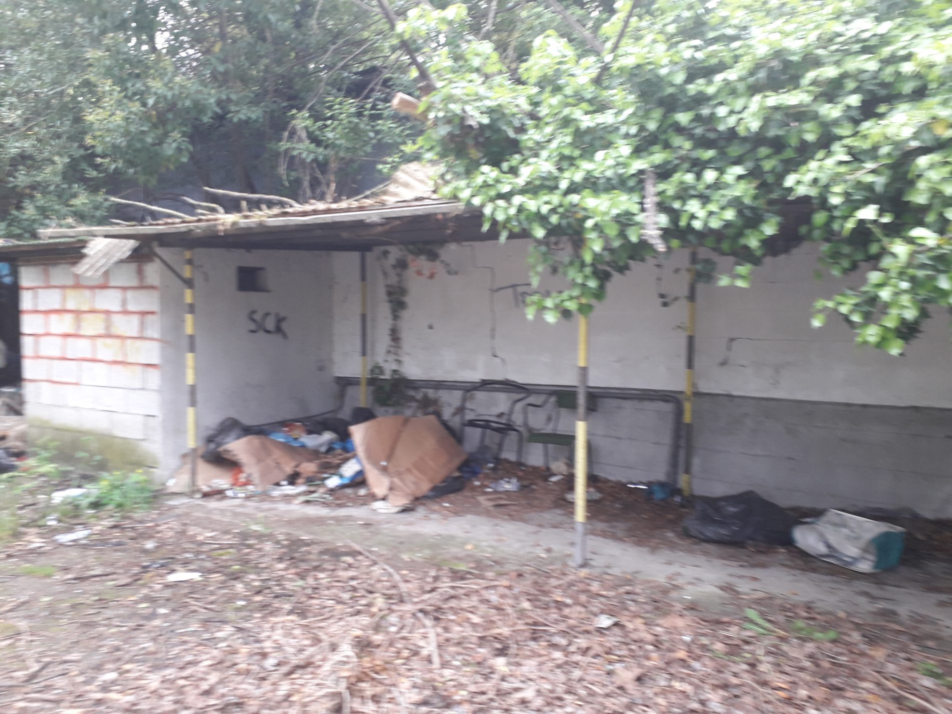 Un cancello aperto – e comunque in ogni caso assolutamente scavalcabile con un po’di agilità – erba altissima (anche nel campo da calcio a cinque all’interno) e poi, tutto attorno, scene apocalittiche: tutta l’immondizia del mondo con borse, giacconi e bottiglie di birra.