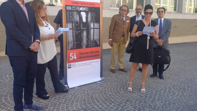 Sit in di protesta e conferenza stampa della Camera Penale di Terni davanti al Tribunale per sensibilizzare sulla situazione delle carceri italiane, ma in particolare di quello di Terni, sovraffollato, con carenza di personale e al primo posto in Italia per numero di suicidi in cella. Un quadro aggravato dal fatto che da tre anni, da quando cioè la direzione regionale è stata accorpata con la Toscana, Terni, come anche Perugia, Spoleto e Orvieto viene usato come “discarica” dove mandare i detenuti più violenti delle carceri toscane: attualmente a Terni ci sono circa 150 detenuti in più con tutte le tipologie di detenuti e con assegnazione dal Dipartimento dell’amministrazione penitenziaria continue