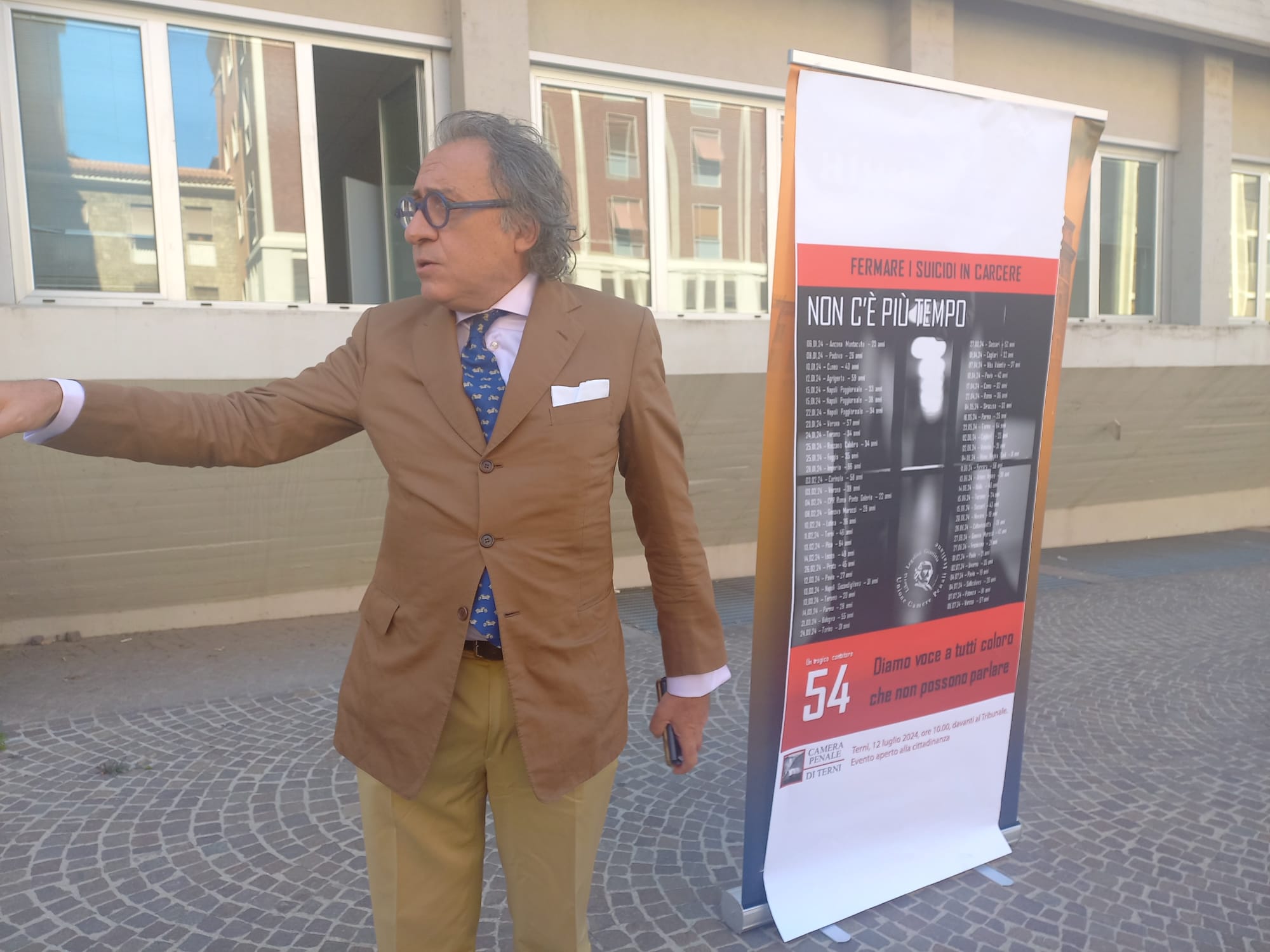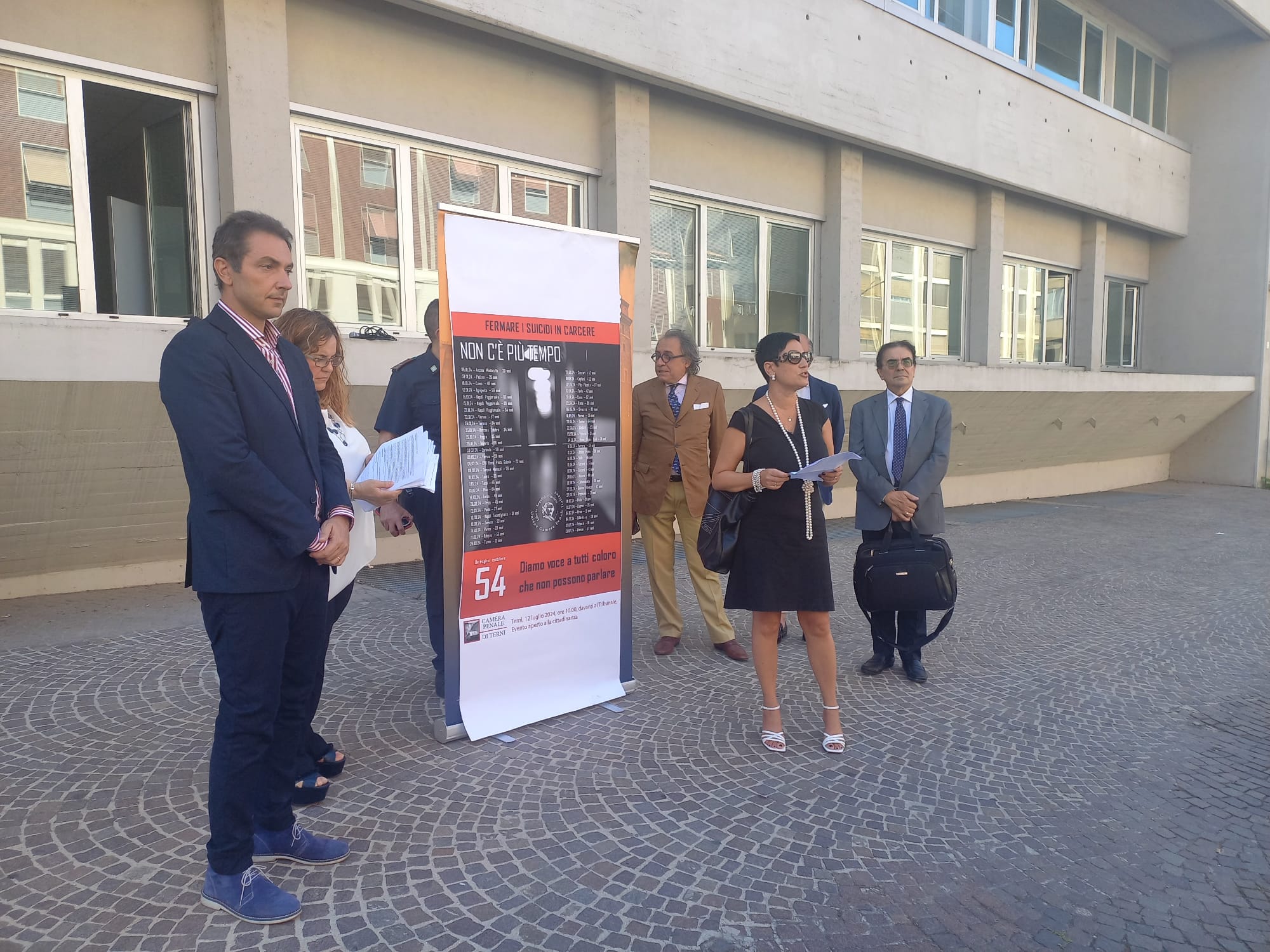Sit in di protesta e conferenza stampa della Camera Penale di Terni davanti al Tribunale per sensibilizzare sulla situazione delle carceri italiane, ma in particolare di quello di Terni, sovraffollato, con carenza di personale e al primo posto in Italia per numero di suicidi in cella. Un quadro aggravato dal fatto che da tre anni, da quando cioè la direzione regionale è stata accorpata con la Toscana, Terni, come anche Perugia, Spoleto e Orvieto viene usato come “discarica” dove mandare i detenuti più violenti delle carceri toscane: attualmente a Terni ci sono circa 150 detenuti in più con tutte le tipologie di detenuti e con assegnazione dal Dipartimento dell’amministrazione penitenziaria continue