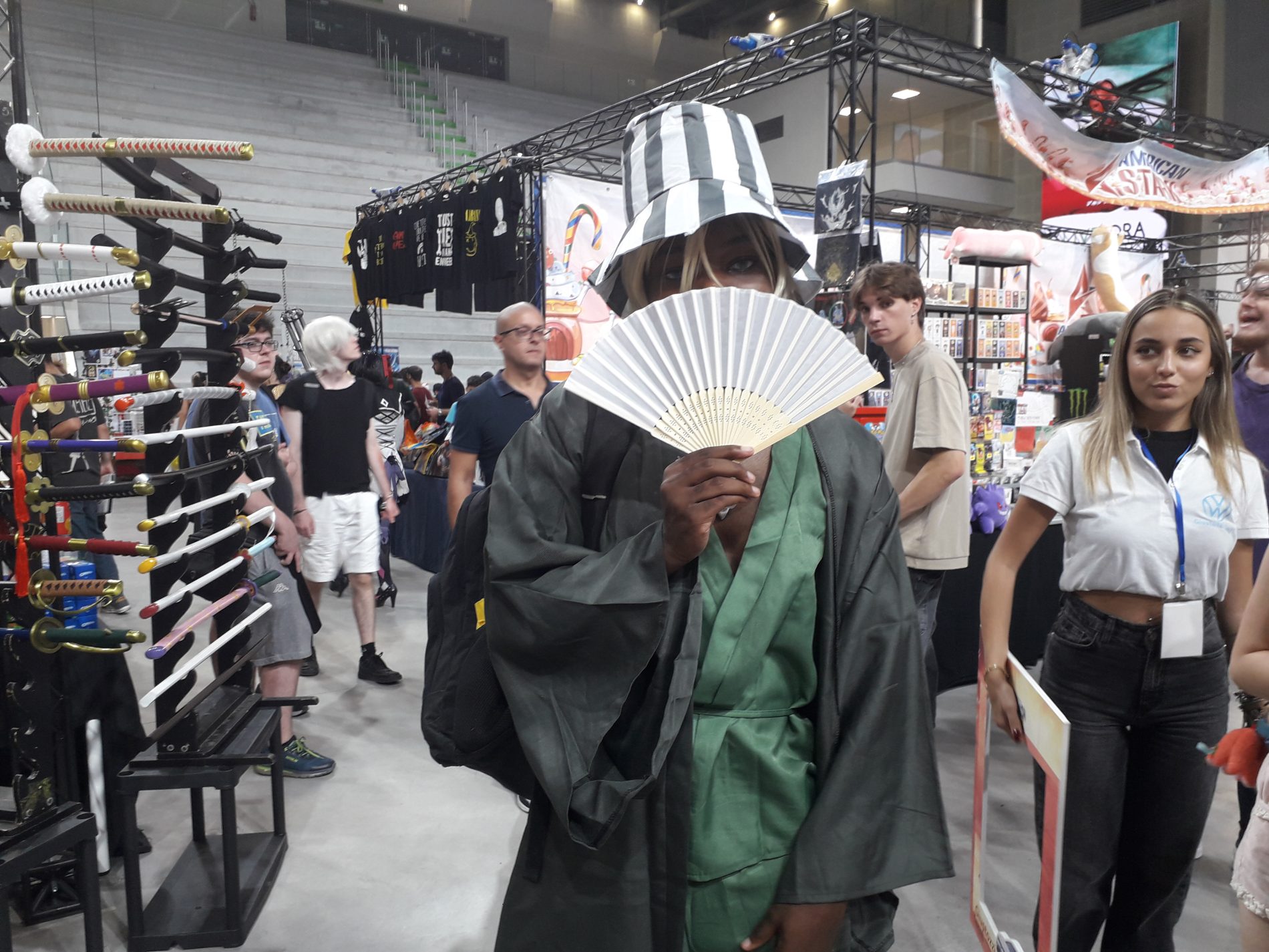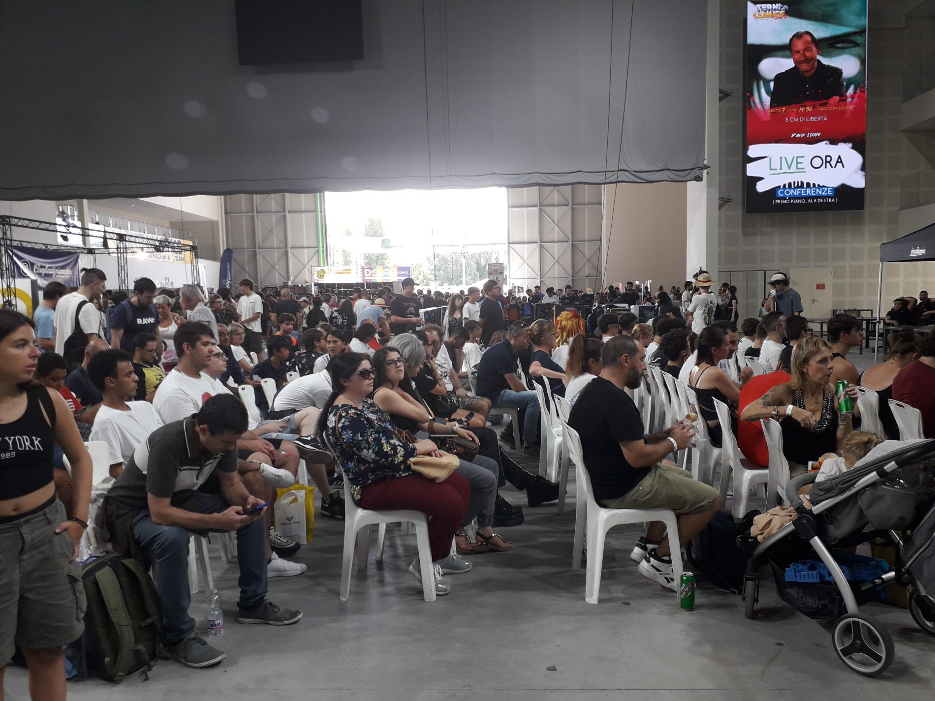 I cosiddetti Cosplayers oltre a vestirsi come gli eroi dei fumetti e dei cartoon ne imitano le movenze. E c’è anche chi – non tantissimi al PalaTerni – impersona personaggi del sesso opposto, i crossplayers. E in fondo è proprio questo l’aspetto più bello: potersi esprimere liberamente: nel modo di vestirsi, comportarsi, atteggiarsi. All’esterno di PalaTerni è presente un palco per gli spettacoli e ci sono diversi stand di ristorazione.