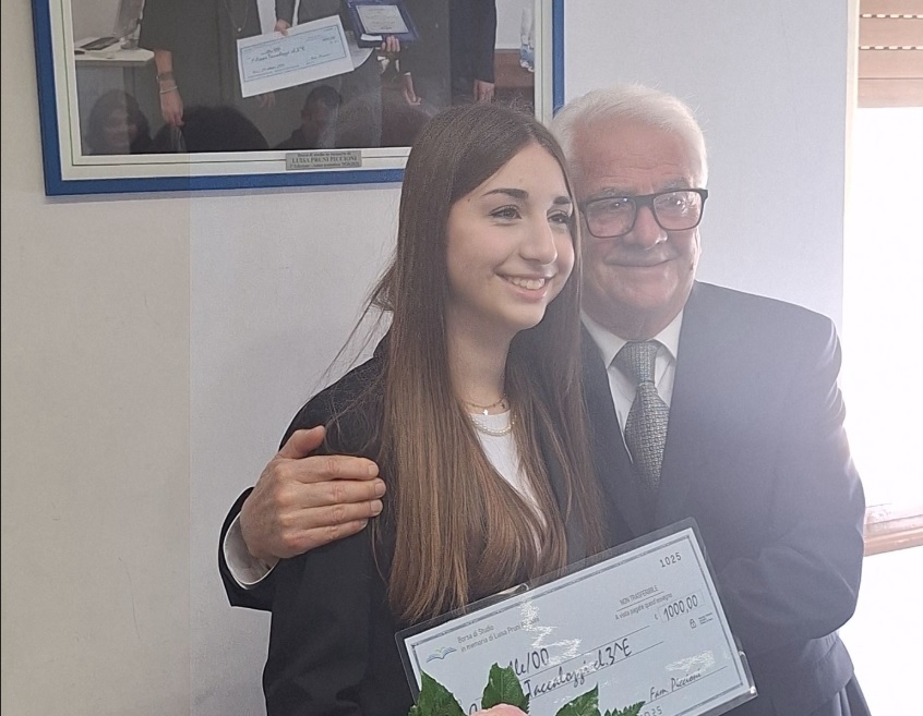 Consegna del riconoscimento a una studentessa meritevole della scuola media Leonardo da Vinci di Terni...