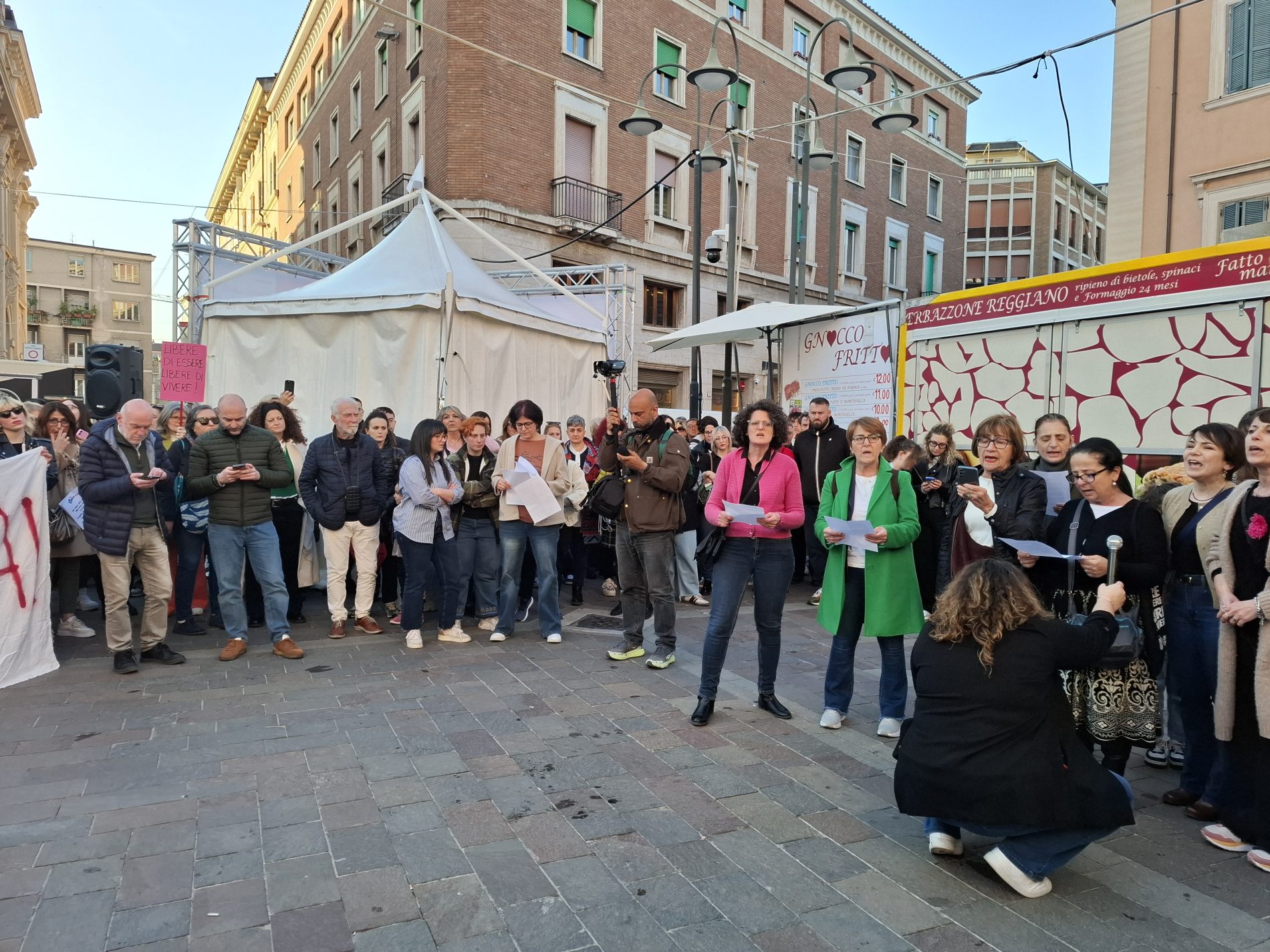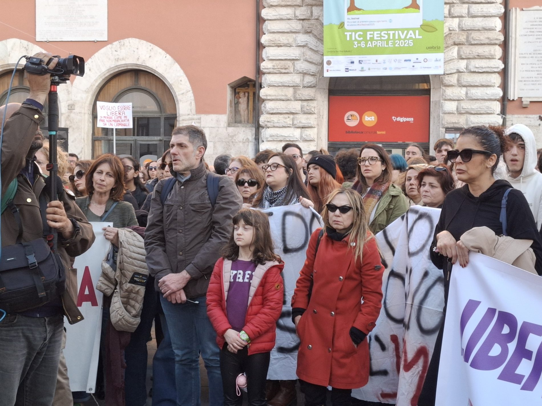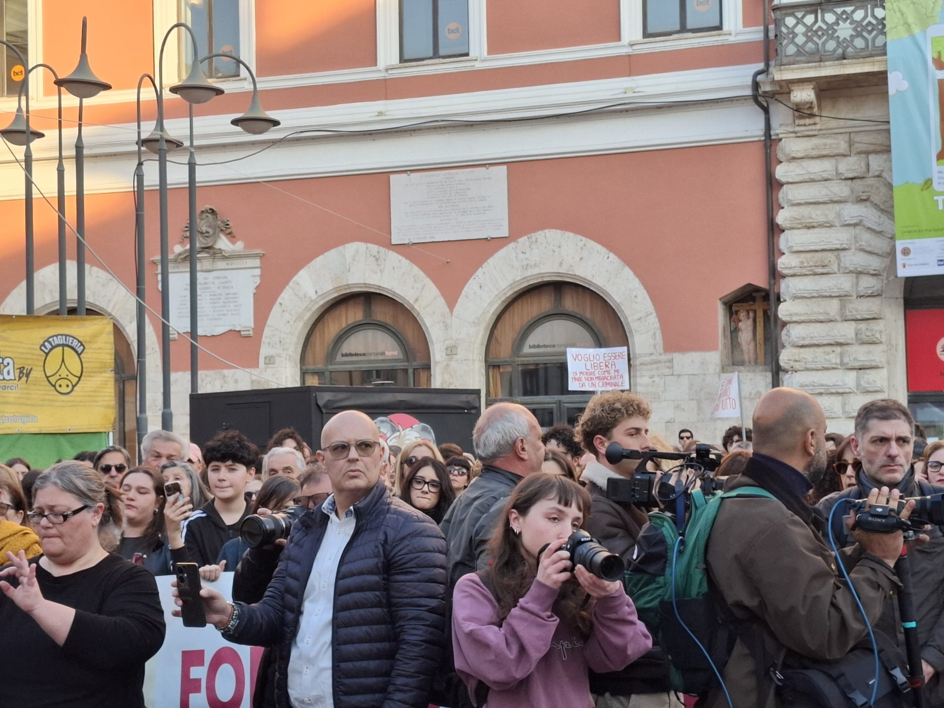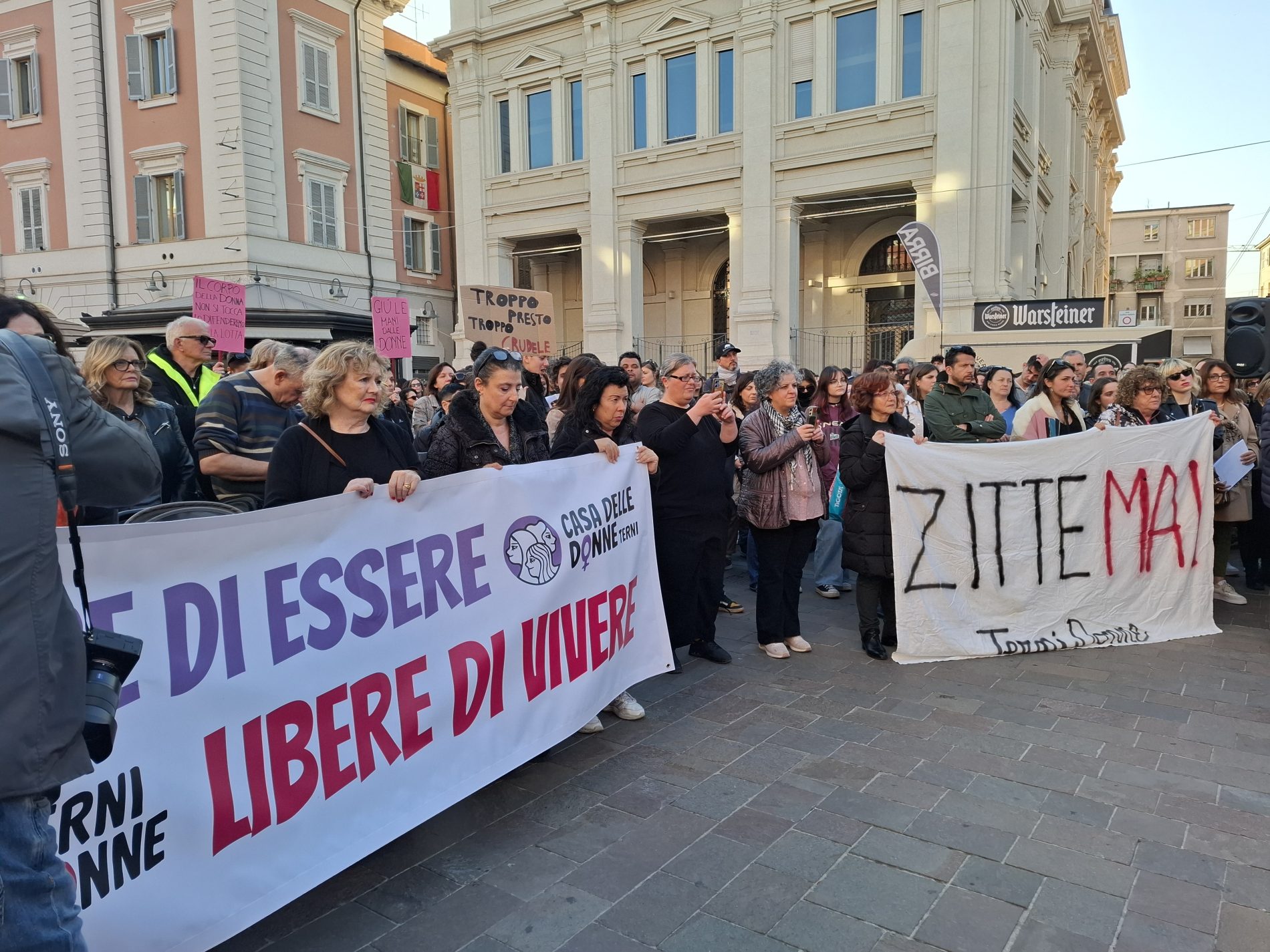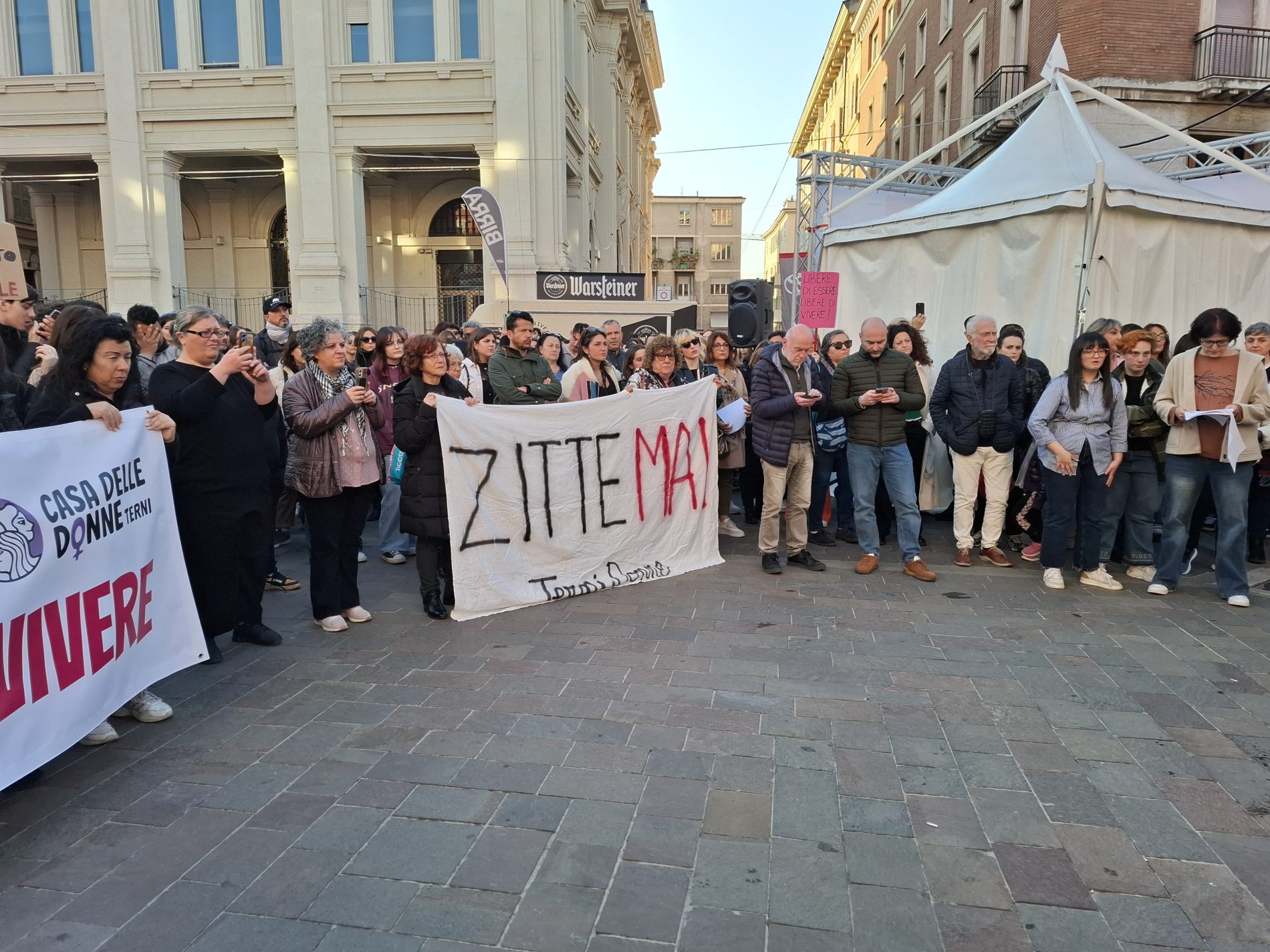 Piazza della Repubblica gremita, tante donne ma anche diversi uomini, compresi diversi esponenti politici. Terni ha risposto all’appello: cori, canti di libertà e femministi, poesie (nel video potete ascoltarne una) e poi il gesto ormai consueto delle chiavi agitate in aria, simbolo di libertà.