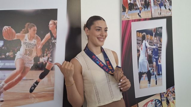 Un momento intenso, sul filo dei ricordi, ma anche un modo per parlare di sport, particolarmente al femminile e di impiantistica sportiva. La sede della Pink Basket in via Natta ha ospitato la consegna della targa celebrativa che la consulta comunale dello sport ha voluto donare a Lorela Cubaj, l’ala ternana classe 1999 della Reyer Venezia, fresca di medaglia di bronzo con la Nazionale agli ultimi Europei, un traguardo che l’Italia non centrava da 30 anni. A soli 25 anni, la giovane è già una certezza della pallacanestro mondiale: dopo la Pink Basket, subito il passaggio alla Reyer poi alla Sistema Rosa Pordenone, prima dell’esperienza americana: la squadra del college Georgia Institute of Technology, poi l’approdo nella WBA: Ney York Libertty e Atlanta Dreams, prima del ritorno alla Reyer
