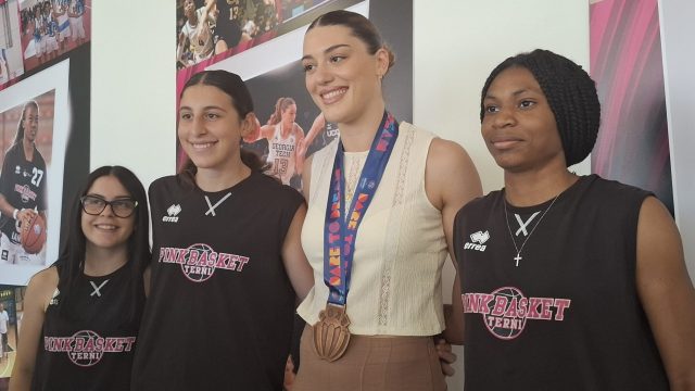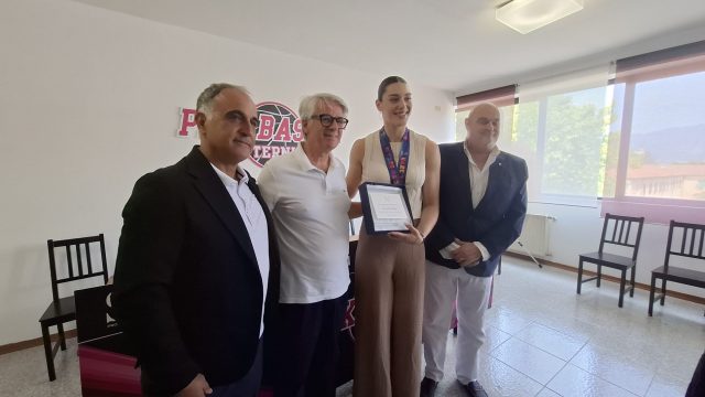 “Abbiamo voluto fare questa premiazione qui dove tutto è cominciato- ha spiegato l’assessore allo sport Marco Schenardi – perchè era giusto che così fosse, visto che qui è il centro dove si forma il nostro basket femminile. Terni ha tanti atleti di valore, ma pochi negli sport di squadra che sono quelli in cui si vive meglio l’aggregazione ed il senso di appartenenza, in questo caso ad un Paese ed ai suoi colori, l’azzurro della nazionale. Lorela Cubaj è un esempio di tutto questo, nel suo modo di vivere lo sport, nella sua passione e nell’appartenenza”. Principi che la Pink Basket, società satellite della fortissima Reyer Venezia, coltiva da sempre: a confermarlo la presenza di alcune giovanissime atlete in divisa