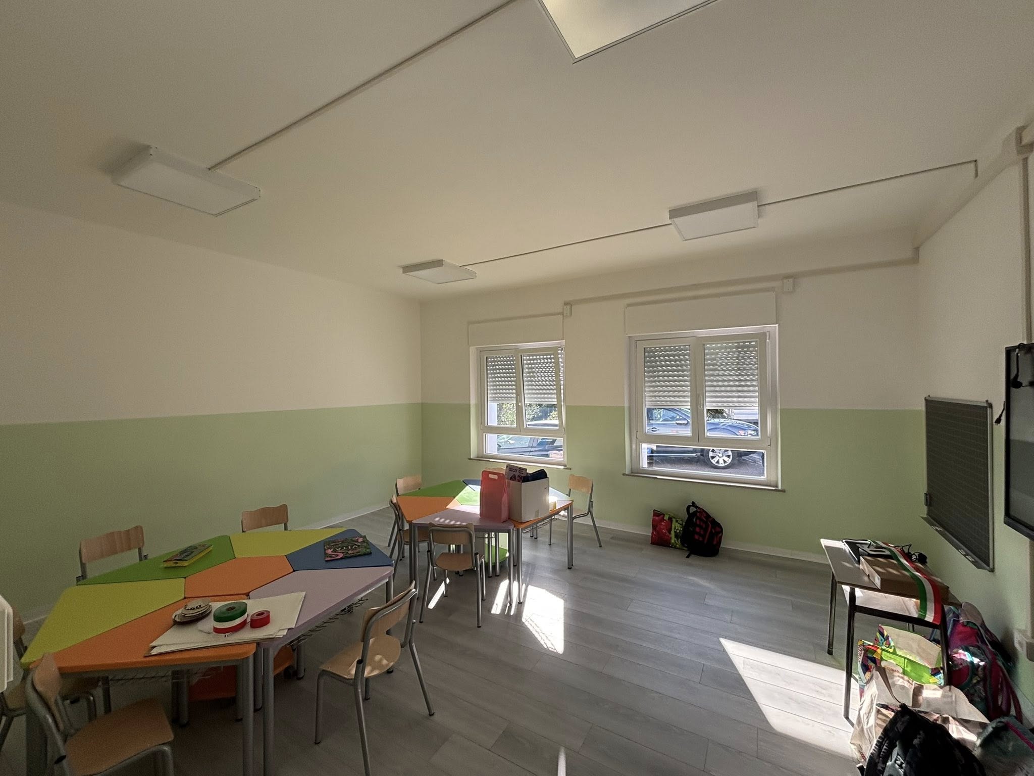 L’intervento di riqualificazione, dal valore di 800.000 euro, è stato finanziato grazie ai fondi del Piano Nazionale di Ripresa e Resilienza (PNRR). I lavori hanno riguardato non solo il consolidamento sismico e la riqualificazione energetica, ma anche un ammodernamento generale della struttura, trasformandola in un ambiente moderno e funzionale, pensato per rispondere alle esigenze di una didattica contemporanea.