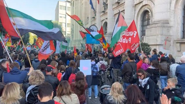 L’unificazione dei due cortei è avvenuta in piazza della Repubblica, dove si è tenuto il momento conclusivo della giornata, caratterizzato da vari interventi pubblici. Attivisti, rappresentanti sindacali e studenti hanno espresso solidarietà alla popolazione palestinese e condanna per la situazione a Gaza, ribadendo la necessità di azioni concrete da parte delle istituzioni italiane ed europee.