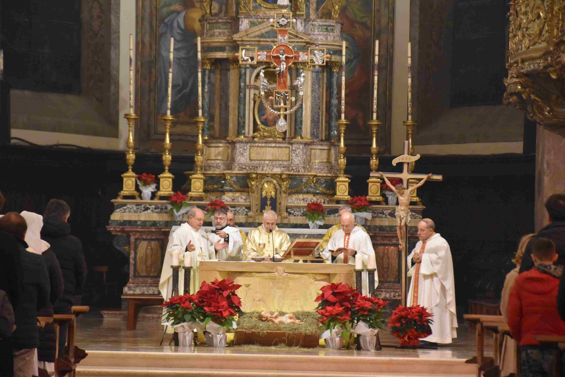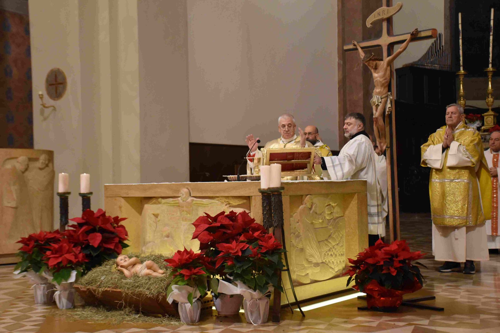 Nella cattedrale di Terni si è svolta la santa messa della Notte di Natale, presieduta dal vescovo Francesco Antonio Soddu. La celebrazione del 24 dicembre ha visto la partecipazione di numerosi fedeli della comunità diocesana, che il presule ha salutato singolarmente al termine della funzione religiosa. Insieme al vescovo hanno concelebrato don Alessandro Rossini, parroco della cattedrale, don Marcello Giorgi e don Francesco De Santis.