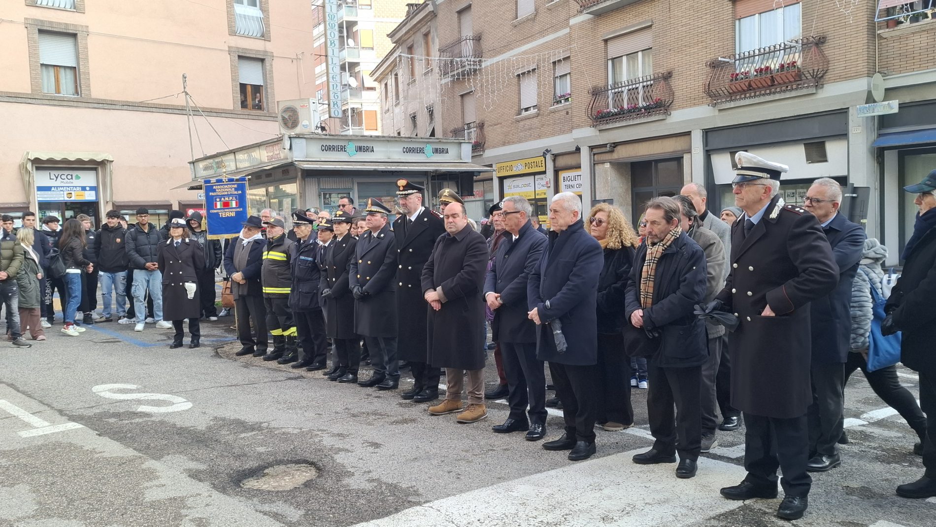 Poca gente – comunque più dello scorso anno – in piazza Corona per la cerimonia di commemorazione della giornata della Memoria davanti alla targa in quella stessa piazza un tempo denominata piazza Giudea, ritrovo di una comunità ebraica ormai quasi scomparsa a Terni.