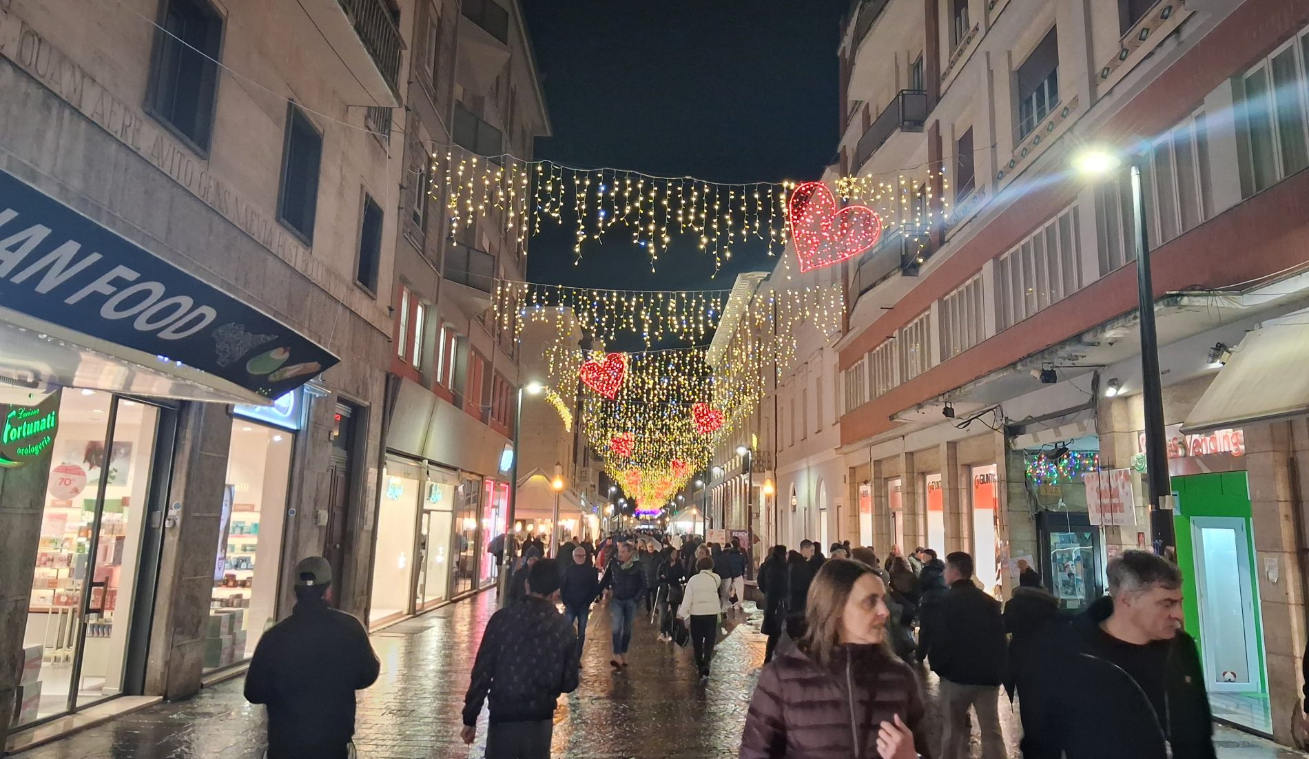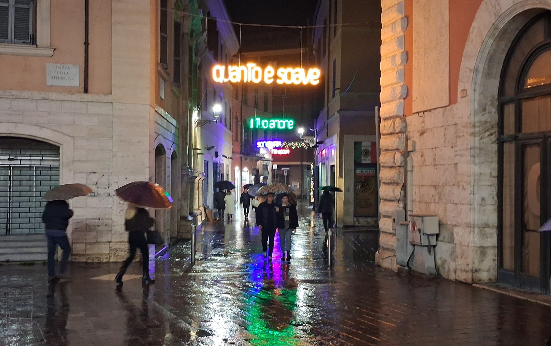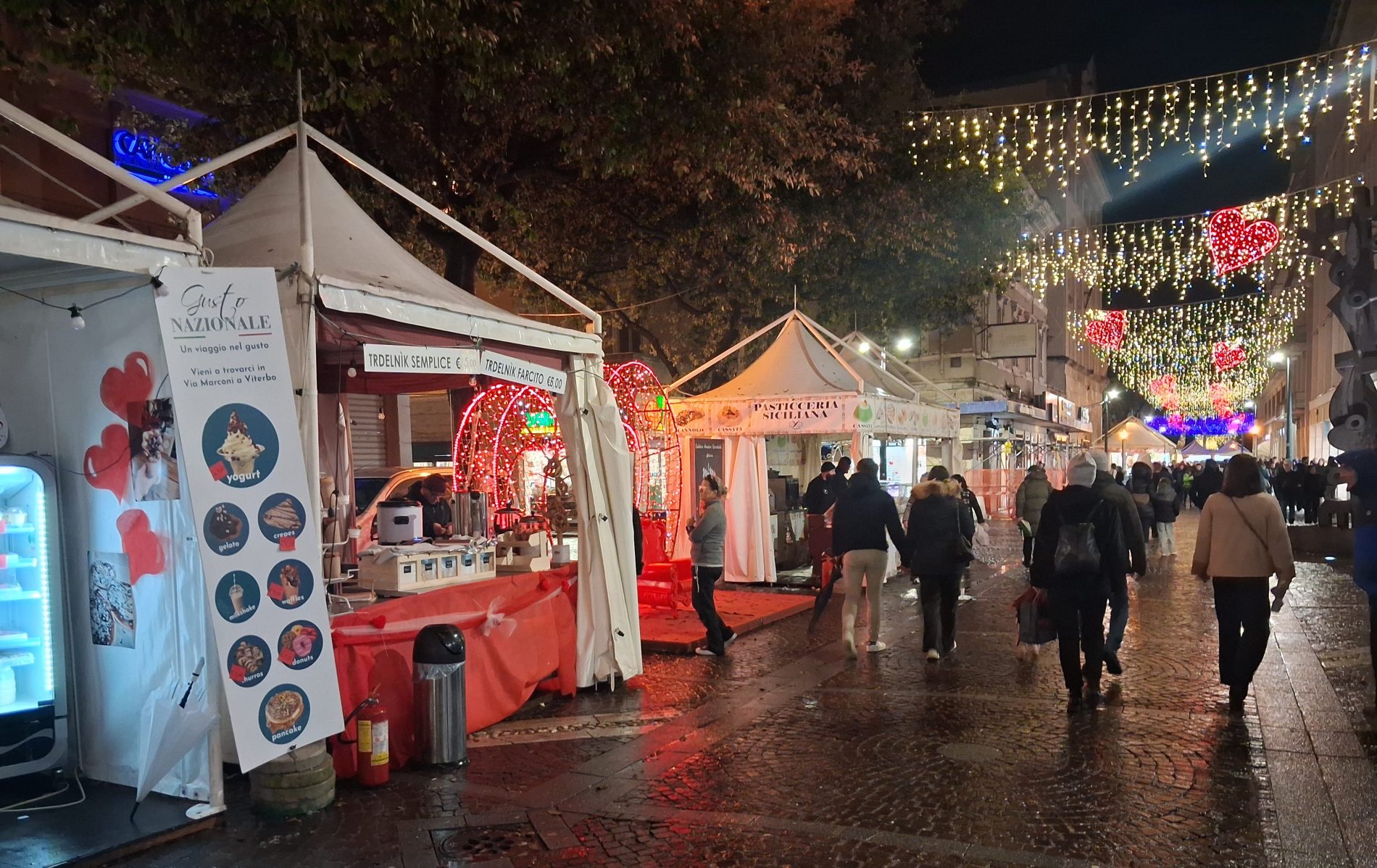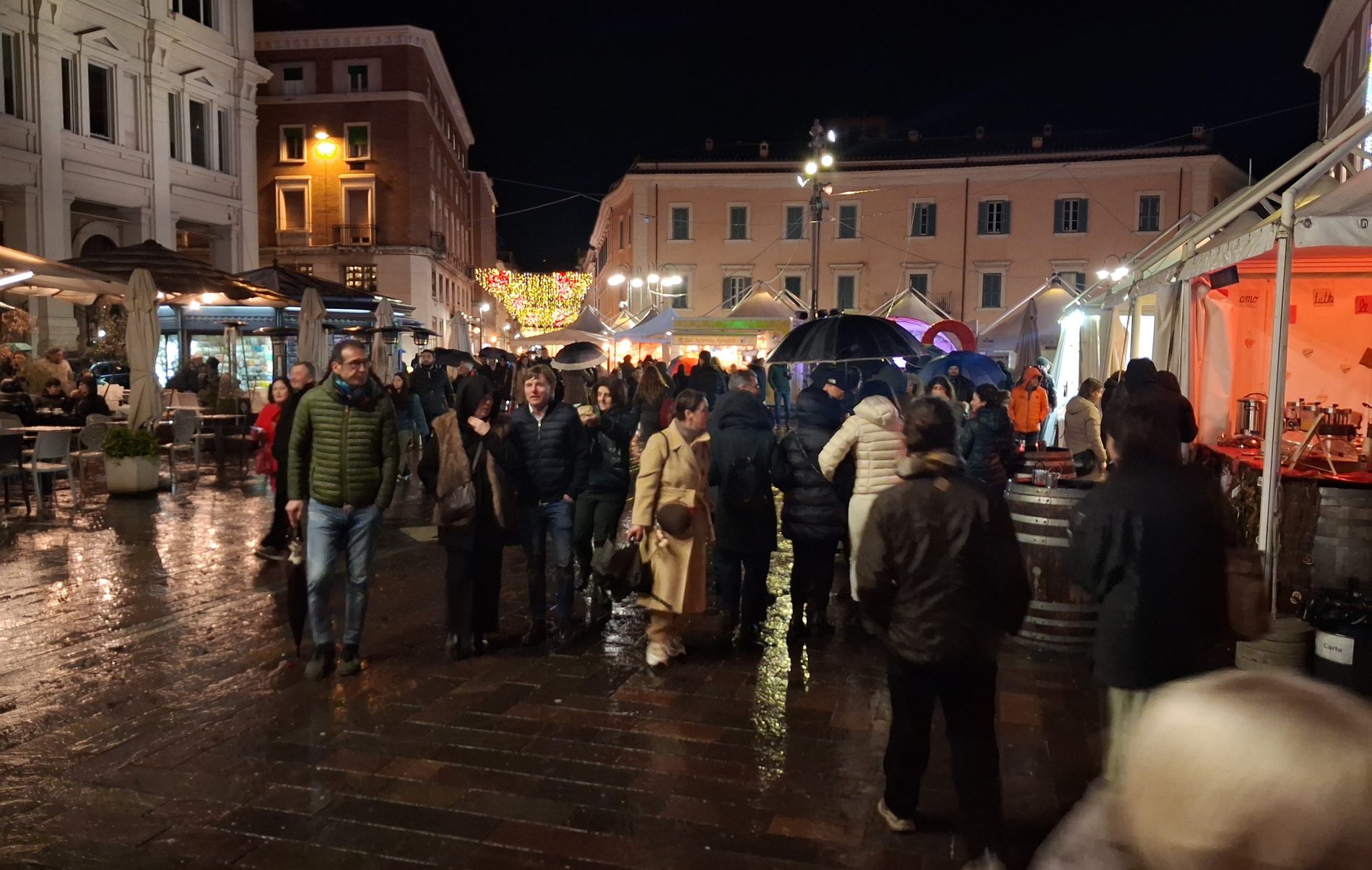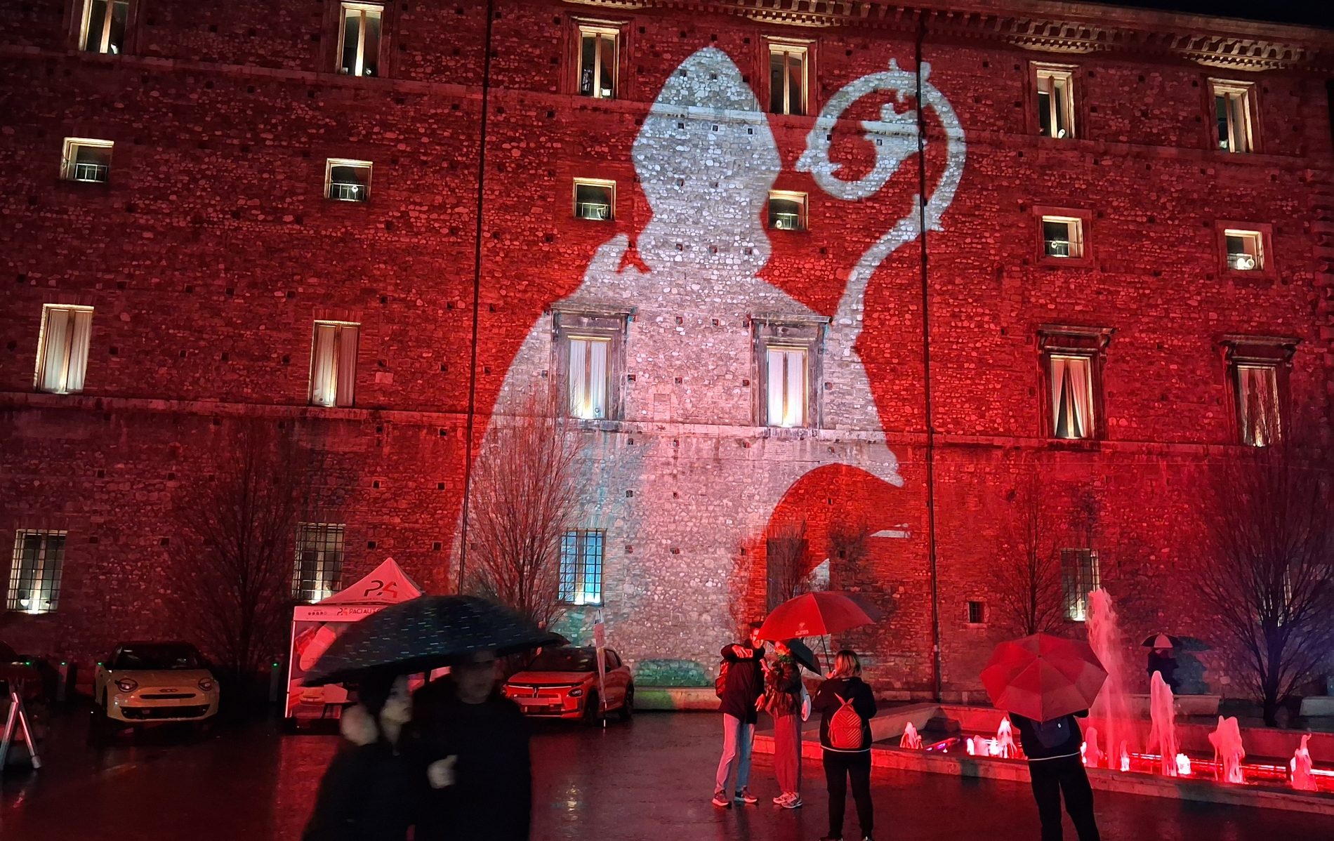 Pioggia a intermittenza, nel pomeriggio del 14 febbraio, su Terni. Quanto è bastato, però, per disturbare le passeggiate in città tra le vie addobbate e illuminate a festa. Terni ha vissuto nonostante le condizioni inclementi del tempo la sua festa, la festa del suo Santo Patrono Valentino. In onore del Santo dell’amore, città addobbata, luminarie e, nel centro cittadino, gli stands di Cioccolentino, la rassegna dedicata ai dolci, alla cioccolata e alle degustazioni che caratterizza il fine settimana fino al 15 febbraio. Lungo le vie, tanti si fermano ad ammirare le luci, a scoprire ciò che le bancarelle propongono e anche a fotografarsi sugli appositi totem, piazzati in diversi punti della città, con i cuori e con sfondi dedicati all’amore. Set di selfie per innamorati, ma anche per genitori con i loro figli. Tra le attrazioni di questa edizione, anche le proiezioni e i videomapping sulle pareti di palazzo Spada, tra luci, immagini e anche la storia di Sabino e Serapia, i due innamorati che proprio Valentino unì in matrimonio dopo che lei, cristiana, convinse il suo amato , pagano, a farsi battezzare. Le manifestazioni per la festa patronale proseguono anche nella giornata di domenica 15 febbraio, con diversi eventi tra i quali il Pontificale in Cattedrale presieduto dal vescovo monsignor Francesco Antonio Soddu la mattina e, nel pomeriggio, la processione per riportare l’urna con le reliquie del Santo dal Duomo alla Basilica accompagnata dal corteo in costume.