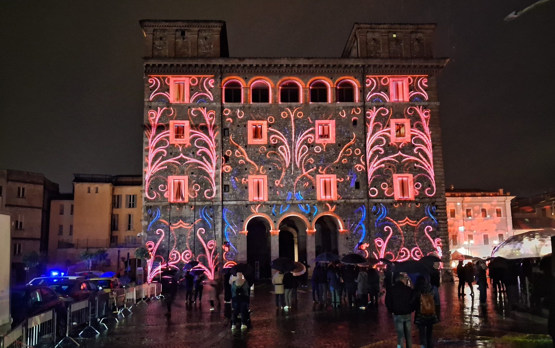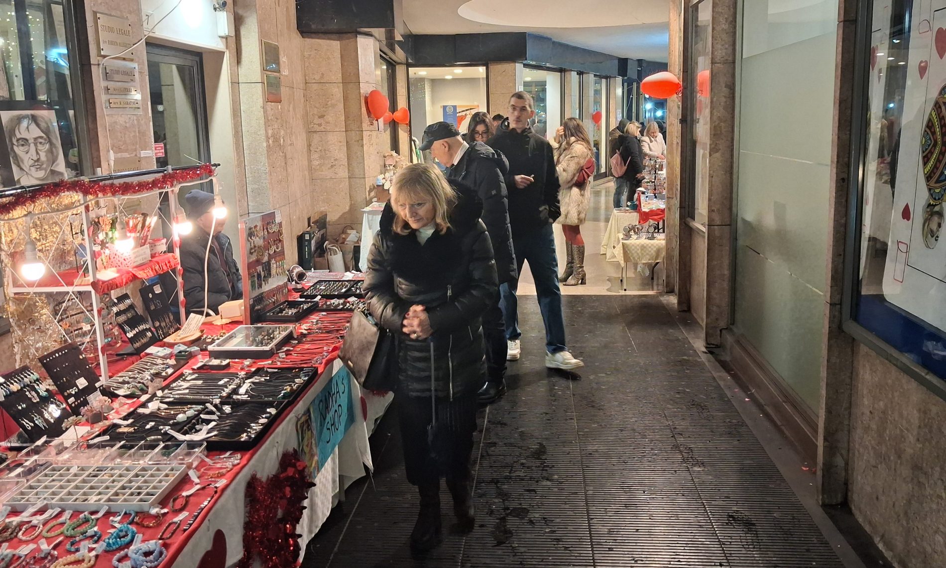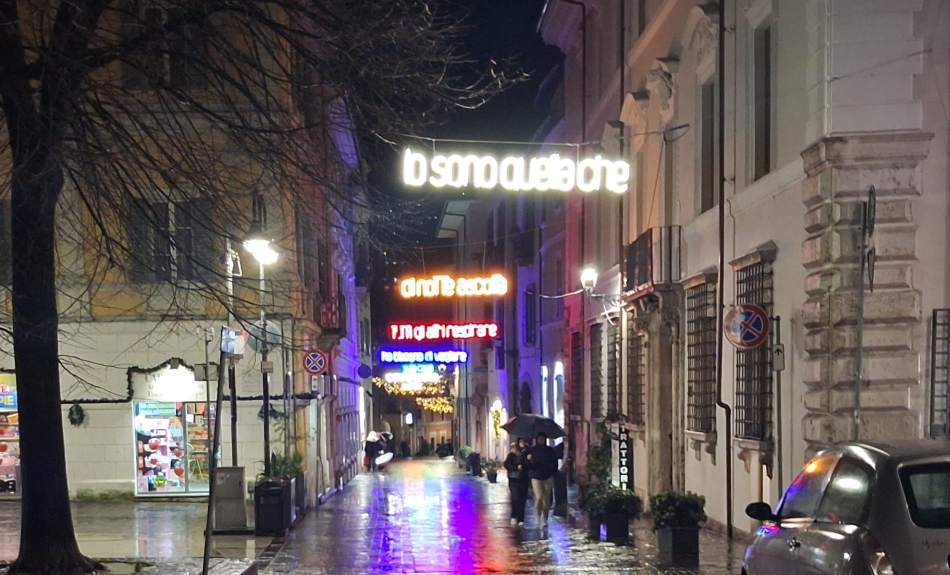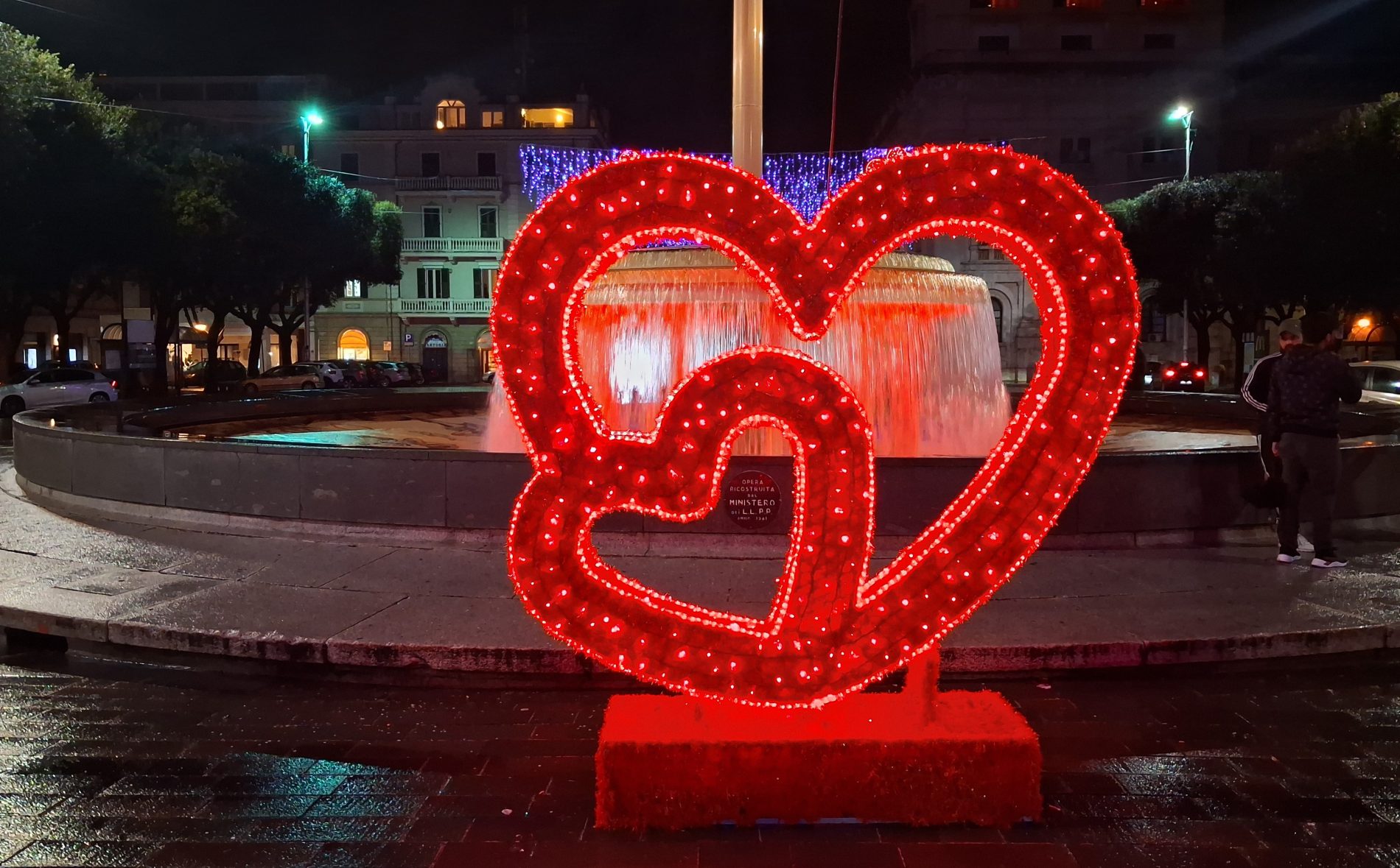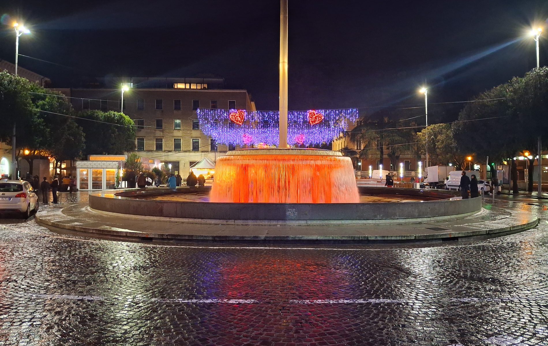 Pioggia a intermittenza, nel pomeriggio del 14 febbraio, su Terni. Quanto è bastato, però, per disturbare le passeggiate in città tra le vie addobbate e illuminate a festa. Terni ha vissuto nonostante le condizioni inclementi del tempo la sua festa, la festa del suo Santo Patrono Valentino. In onore del Santo dell’amore, città addobbata, luminarie e, nel centro cittadino, gli stands di Cioccolentino, la rassegna dedicata ai dolci, alla cioccolata e alle degustazioni che caratterizza il fine settimana fino al 15 febbraio. Lungo le vie, tanti si fermano ad ammirare le luci, a scoprire ciò che le bancarelle propongono e anche a fotografarsi sugli appositi totem, piazzati in diversi punti della città, con i cuori e con sfondi dedicati all’amore. Set di selfie per innamorati, ma anche per genitori con i loro figli. Tra le attrazioni di questa edizione, anche le proiezioni e i videomapping sulle pareti di palazzo Spada, tra luci, immagini e anche la storia di Sabino e Serapia, i due innamorati che proprio Valentino unì in matrimonio dopo che lei, cristiana, convinse il suo amato , pagano, a farsi battezzare. Le manifestazioni per la festa patronale proseguono anche nella giornata di domenica 15 febbraio, con diversi eventi tra i quali il Pontificale in Cattedrale presieduto dal vescovo monsignor Francesco Antonio Soddu la mattina e, nel pomeriggio, la processione per riportare l’urna con le reliquie del Santo dal Duomo alla Basilica accompagnata dal corteo in costume.